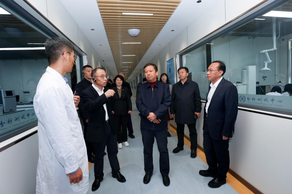 在分析测试中心,李国强认真听取了中心运行机制,大型仪器共享服务平台的建设、使用情况,充分了解了中心在学校科技创新和社会服务过程中的辅助和支持情况。